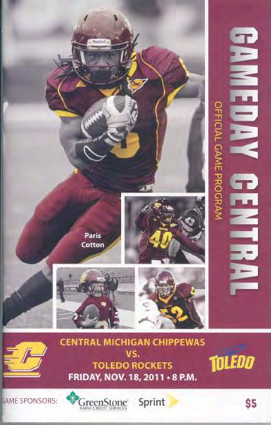• Toledo dominated the game statistically, outgaining the Chippewas in total ofense, 511-346. Sophomore QB Terrance Owens, starting in place of the injured Austin Dantin, completed 24-of-32 passes for 275 yards and two touchdowns. Junior WR Eric Page caught 11 passes for 96 yards while senior Adonis Thomas led the rushing attack with 131 yards and two scores. • The game was a vindication for Toledo’s defense which had allowed 63 points in each of the Rockets’ last two games. UT had three sacks, held CMU to just 113 yards rushing and stopped the Chippewas on 10 out of 11 third-down plays.