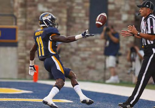 Sophomore DwightMacon caught seven passes for 115 yards in Toledo’s 2012 spring game, leaving Rocket fans with the distinct impression that the quarterback/wide receiver may be catching more passes than throwing them in 2012. For the record, many Rocket fans will recall the last converted QB to move to wideout was none other than...Eric Page. AReedy andMacon combinationwouldbe agood start for the receiving corps, but Toledo will need other receivers to step up to keep its high-powered ofense rolling. Veterans returning to the receiving corps include junior James Green and sophomores