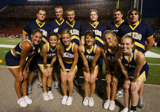 Providing the spirit at all home and road football games are the cheerleaders. The cheerleaders are also at every home men’s and women’sbasketballgame, andnumerouspublic appearances on behalf of the UT Athletic Department. The UT cheerleading squad consists of a varsity and a ju-