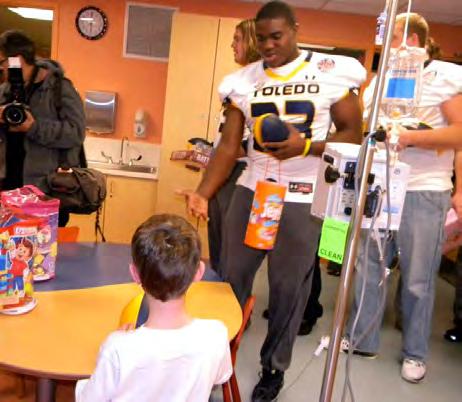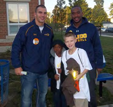 Coach Campbell and his staf believe it is important for young men to give something back to their community. That’s why members of the football team go into the Toledo communi-ty and volunteer their time. Here are some of the volunteer projects in which the Rockets participated: