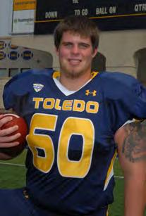 Played inall 13games as a reserve lineman...Part of offense that rankedeighth innationandfrst in MAC in scoring (42.2), and 10th in thenationandfrst inMAC in total ofense(481.3)...Toledo’sofensive line also ranked tied for sixth in nation and frst in MAC in fewest sacks allowed (10)...Nominee for