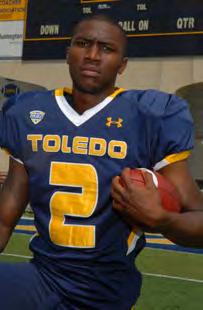 Stepped in as Toledo’s QB when Austin Dantin went down with an injury vs. EMU...Threw for 13 TDs against just fve interceptions...Threw for one TD and ran for another vs. FIU in Little Caesars Pizza Bowl...Threw for season-best 304 yards, threeTDs on 24-of-32 passing and no interceptions vs. CMU... Also caught a 28-yard TD pass vs. CMU...Named MAC West Division Ofensive Player of theWeek for his performance vs. CMU...Led UT to victory over Bowling Green with 16-of-25 for 225 yards and two TDs...TD passes came on UT’s frst two possessions, passes of 48 yards and 33 yards...Debuted as a startervs.NorthernIllinois...Completed18-of-38passes for186 yards and two TDs vs. NIU...Came in for Dantin in frst quarter of EMU game and led UT to 42-7 victory...Threw for 234 yards and career-high four TDs vs. EMU...Had TD passes of 74, 68, 53 and six yards...Played in three other games in a back-up